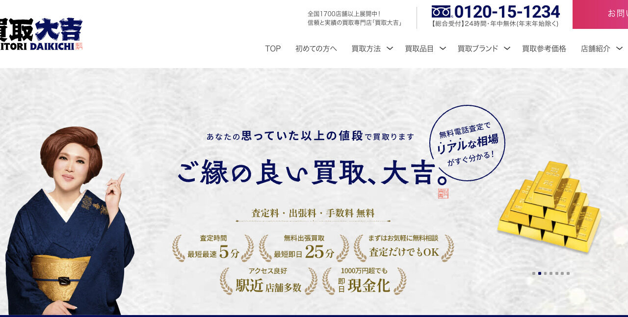 全国に圧倒的な店舗ネットワークを展開し、IKKOさんのテレビCMでも広く知られている「買取大吉」は、その気軽さと安心感で多くのユーザーから支持を集めています。 ショッピングモールの中や近所の商店街など、私たちの生活圏内に店舗があるアクセスの良さが最大の魅力であり、思い立ったときに予約なしでサクッと立ち寄ることができます。
