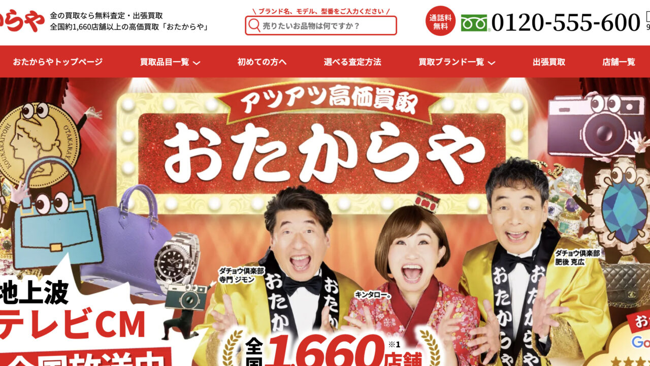 Screenshot創業から70年以上の歴史を持ち、日本最大級のリユースデパートとして全国に大型店舗を展開しているのが「コメ兵」です。ハイブランドのジュエリーや時計の膨大な流通データを網羅しており、その圧倒的な取引実績に基づいた「ブレのない適正価格」に定評があります。