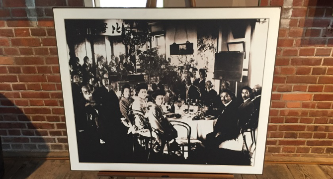 先ほどご紹介したように、板垣退助の写真も残っています。この写真は、1913年にシャトーカミヤ本館2階で催されたワインパーティの様子を撮影したものです。