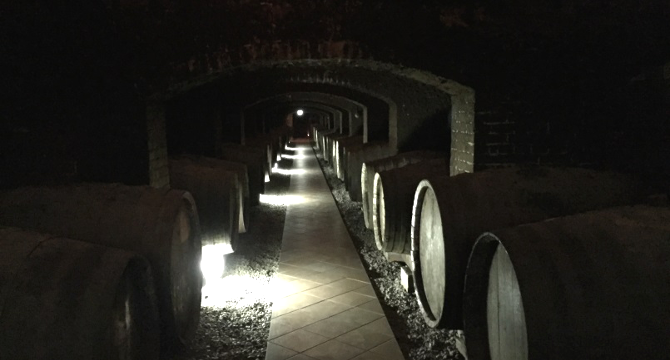 さて地下に到着すれば、そこにはシャトーカミヤで昔、利用されていたワイン貯蔵庫が私達の前に現れます。一直線に並んだワイン樽はどれも年代物で、当時のシャトーカミヤを彷彿とさせる見事な作りです。今でもワインが眠っていてもおかしくないと感じます。
