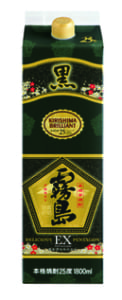 黒霧島EX紙パック 25度 1,800mlは、アルコール度数25%の黒霧島EXと同じラインナップの芋焼酎です。ブラックに光るゴールドのブランドロゴが印象的で、瓶ボトルよりも20円安い定価設定となっています。