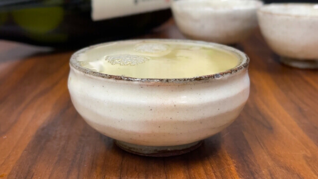 4種類目は「上燗」です。温度は45度前後で、湯気が見えやすくなる熱さとなっています。香りも柔らかさを含んでいたものからキレを感じさせるものに変貌。パンチを感じる美味しい味わいです。