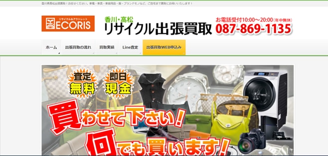 香川でおすすめランキング第4位はエコリス高松伏石店です。当店は香川県高松市にあるリサイクル専門店で、家電・家具、ブランド品、工具、日用品などを高価買取しています。