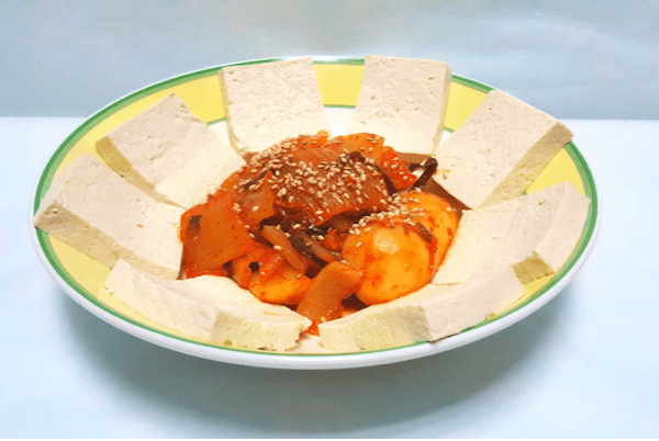 豆腐にキムチ炒め乗せて食べるもので、豆腐とキムチの辛さが程よくマッチして美味しいので、韓国だとおかずやおつまみ、夜食によく食べられています。