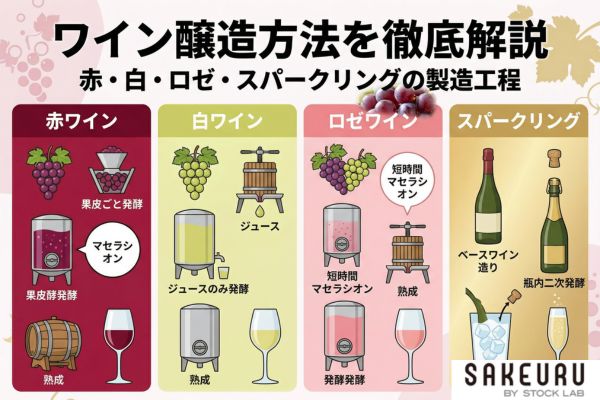 ワイン醸造方法を徹底解説|赤・白・ロゼ・スパークリングの製造工程